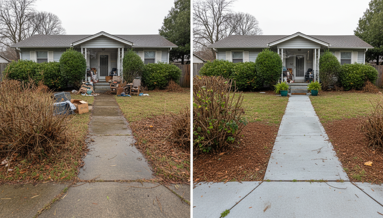 We focus on the outdoor areas that most quickly affect how a property looks and feels. That includes clearing overgrowth, removing green waste, restoring garden edges, and getting pathways and entry areas clean and accessible.